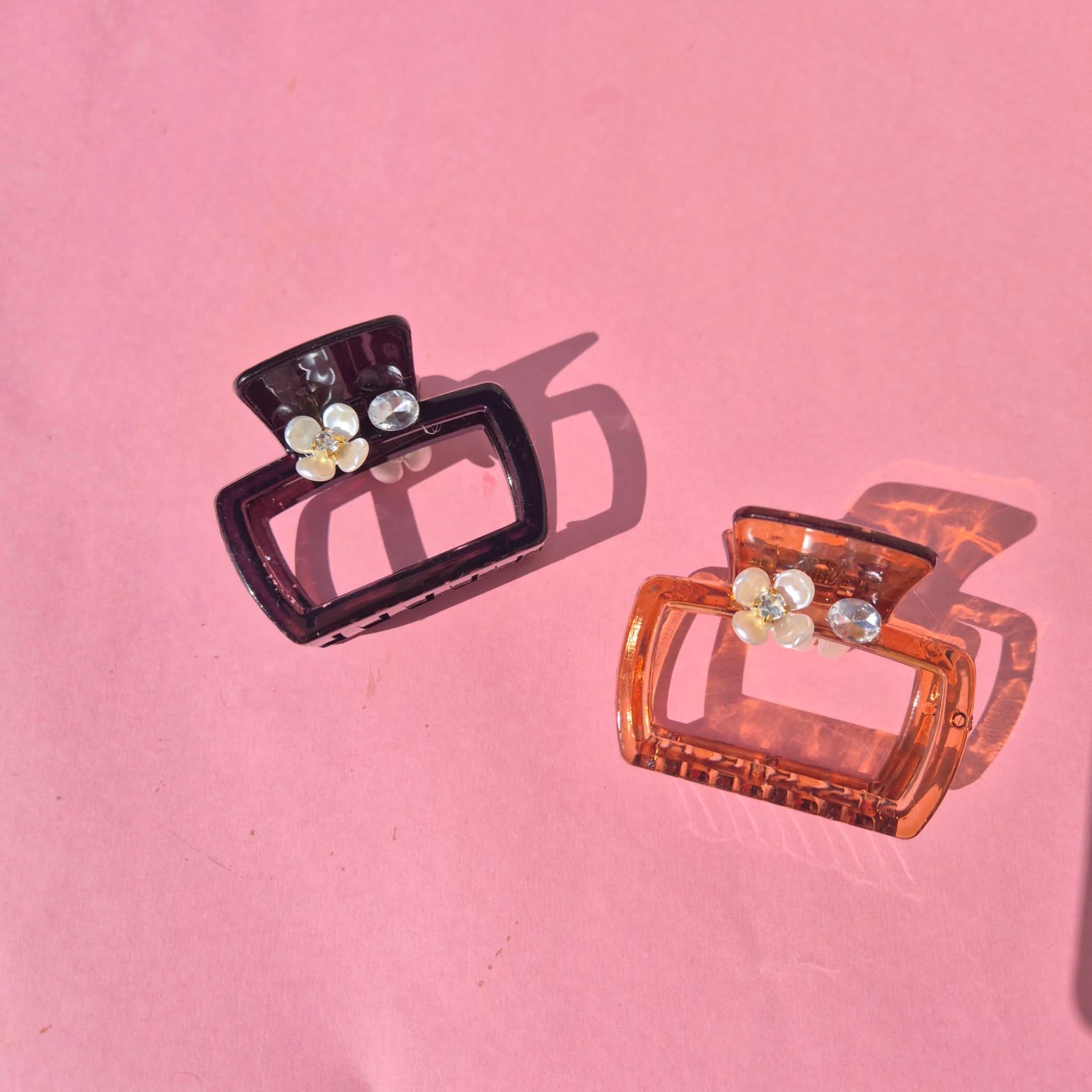 Elevate your hairstyle with this elegant transparent hair claw clip, designed with a sleek, crystal-clear acrylic body and adorned with dazzling heart-shaped rhinestones. The iridescent hard stones shimmer beautifully under the light, adding a touch of sparkle and glam to any look. Durable yet stylish, the sturdy gold-tone spring provides a secure grip, making it perfect for everyday wear or special occasions.